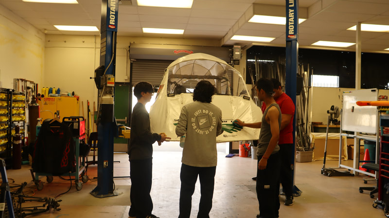 Palmdale High School’s Solar Falcon Race Team is a unique program through the Engineering Academy, which was created in 2014 to teach students how to design, manufacture, and race a solar-powered and electric powered vehicle. Each student will be taught a variety of different skills that will be necessary for the design, testing and construction of the solar car. Some of the skills that are taught in this program include: The Design Process, CAD Drafting Electrical Systems and Welding. Once each student has acquired basic knowledge of each skill they will then choose to be in a particular “company” which will focus primarily to one skill.